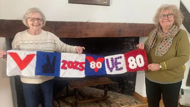 A touching yarn bomb display by the Secret Society of Hertford Crafters (SSOHC) has been unveiled at The Mill Garden to commemorate the 80th anniversary of VE Day. Among the knitted tributes is the story of Agnes and Gordon Taylor, who met during World War Two in a Hertingfordbury potato field. Agnes, a Land Girl, spotted Gordon, a Home Guard member, while harvesting crops. The couple married in 1950 and lived in Bengeo until Gordon’s death in 2017. Agnes later joined the SSOHC before passing away in 2023 at age 99.